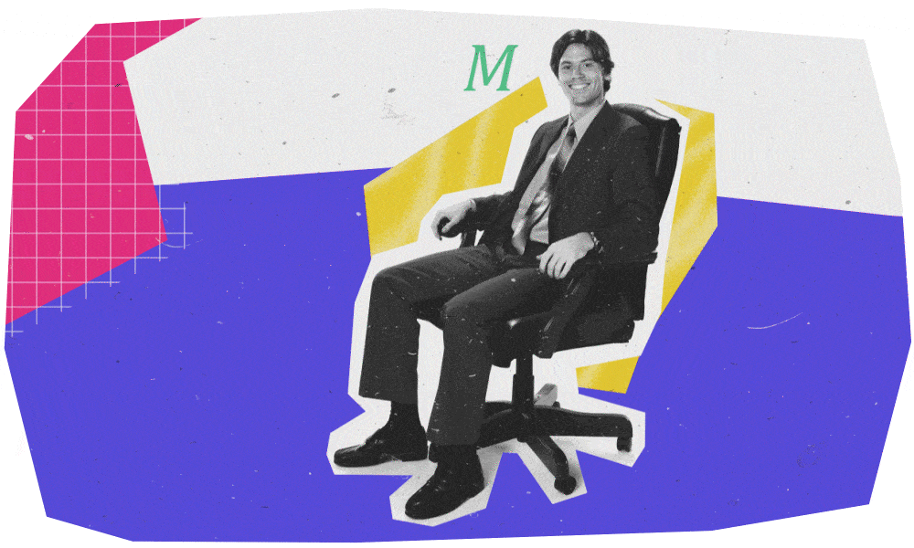 Sei seduto su una sedia da ufficio, quando qualcuno ti lancia un quaderno addosso.