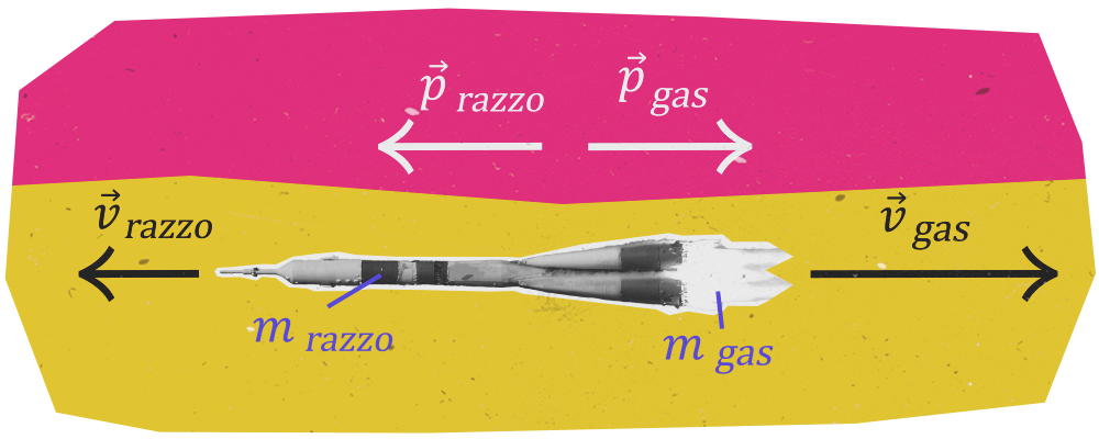 Contrariamente a quanto si possa pensare, però, non è né la presenza di un motore interno, né la spinta del gas verso il terreno che fanno acquisire al razzo velocità verso l’alto, bensì la conservazione della quantità di moto del sistema costituito dal razzo e dal gas applicata esattamente alla stessa maniera del rinculo.