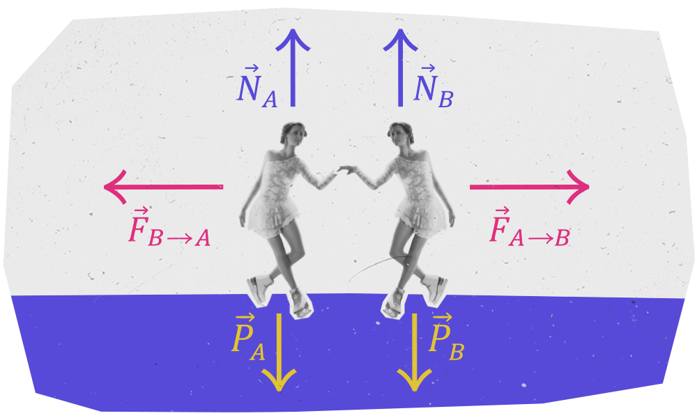 Consideriamo due pattinatrici su ghiaccio inizialmente ferme una di fronte all'altra e con le mani a contatto.